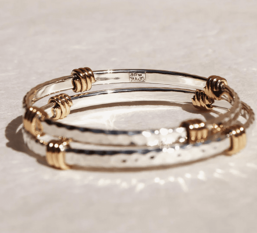 With its touch-me texture and soft metallic hues, the beautiful Amarres always makes a sophisticated statement. Tumbaga twines give this stunning hand-beaten sterling silver bangle a wear-with-everything dual tonality you'll cherish. Flaunt it solo or create a sublime stack with its wider Amarres sister.